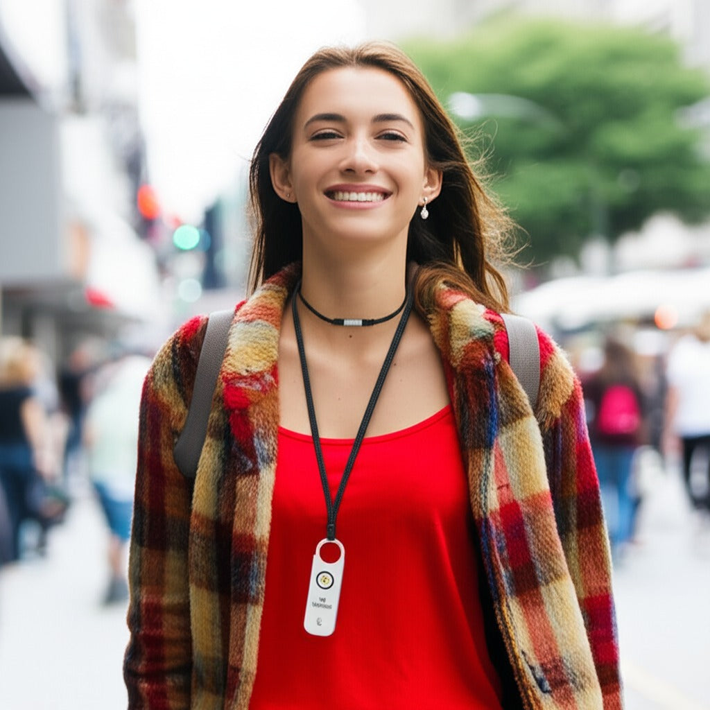 Its small size and light weight make it easy to wear around your neck, on a wrist strap, carabiner, clipped to a purse or backpack, belt loop or carry in a pocket, ensuring you always have extra safety and peace of mind wherever you go!